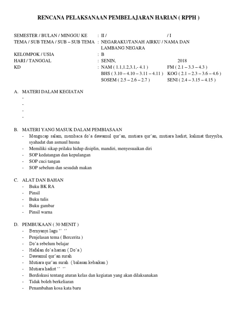 Contoh rpph model sentra paud. Gambar anak tk tema tanah airku paling hist. Rpph tk paud kurikulum 2013 kelompok usia 5 6 tahun tema negaraku. Contoh menurunkan sub tema tanah airku untuk paud. Rppm merupakan kependekan dari rencana pelaksanaan pembelajaran mingguan, yang dilaksanakan pada satuan pendidikan anak usia dini (paud).